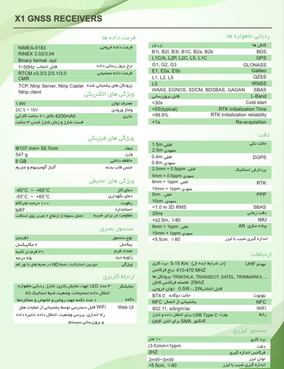 1408 کانال ، دارای رادیو مودم داخلی ، دارای تیلت سنسور IMU60 درجه ، دارای دوربین AR ، دارای لیزر مرئی نور سبز ، باطری داخلی ، بدنه فلزی ، کم حجم: دستگاه به همراه پاور بانک و ژالون 2/50 متری طرح کربن به انضمام متعلقات استاندارد کیف حمل