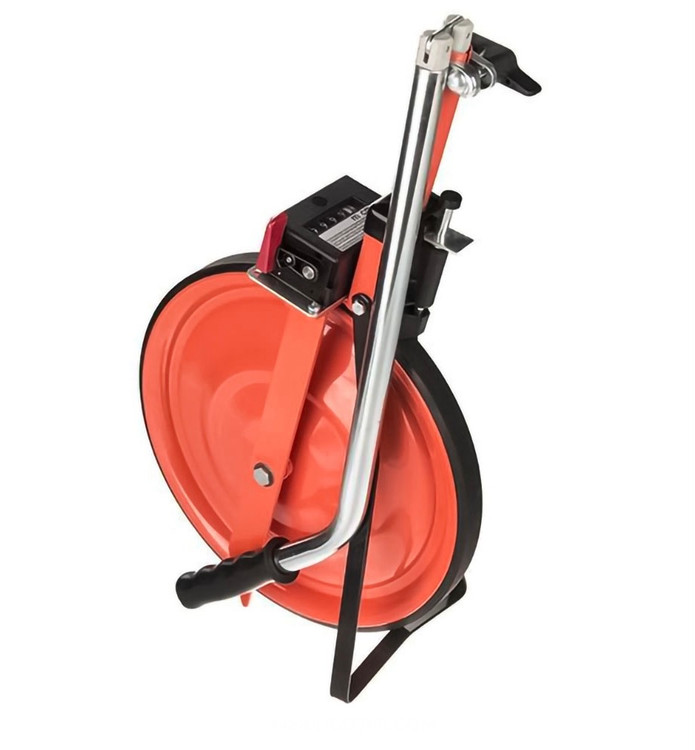این متر چرخ دار دارای چرخ و دسته تمام فلزی بوده و دسته آن تاشو میباشد.