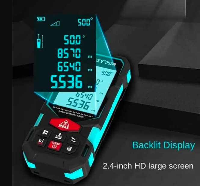 دوربین دار با زوم 2x و دارای شیب سنج دیجیتالی: متر لیزری ، باطری قابل شارژ ، کابل ارتباط با کامپیوتر ، کیف کمری ، بند دست