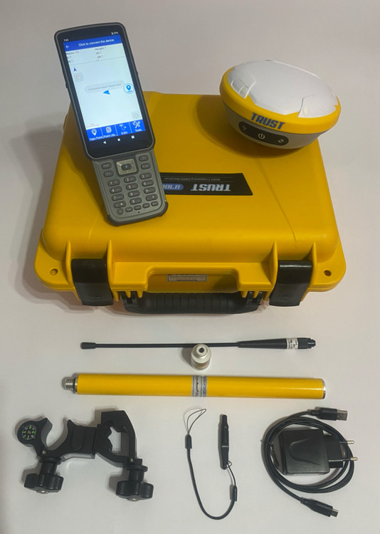 1408 کانال ، دارای رادیو مودم داخلی ، دارای تیلت سنسور IMU60 درجه ، باطری داخلی ، بدنه فلزی ، کم حجم: ریسیور ، کنترلر ، هولدر ، اکستندر ۳۰ سانتی ، آنتن UHF ، آدابتور فلانژ ، قلم لمسی کنترلر ، شارژر ، کابل USB تخلیه اطلاعات و شارژ ، کیف حمل فایبر گلاس