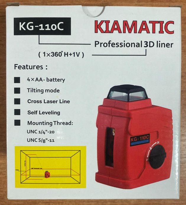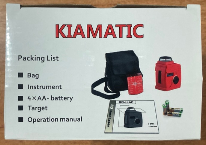تراز لیزری با یک مستطیل افقی خطی و یک خط قائم (۵ خطه): تراز لیزری ، کیف حمل برزنتی ، تارگت ، باطری قلمی و دفترچه راهنمای لاتین